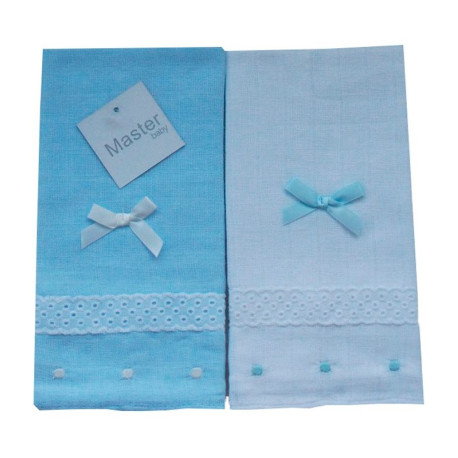 Pack de 2 gasas bordadas con lazo y puntilla.
