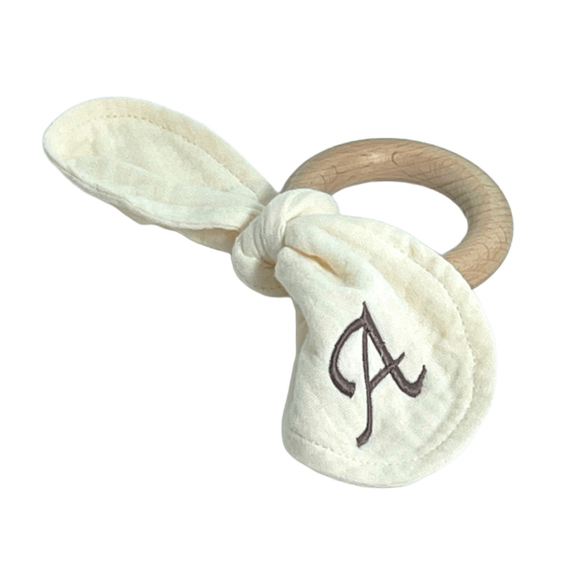 Dou dou de suave algodón orgánico de conejito con mordedor de madera ecológica.